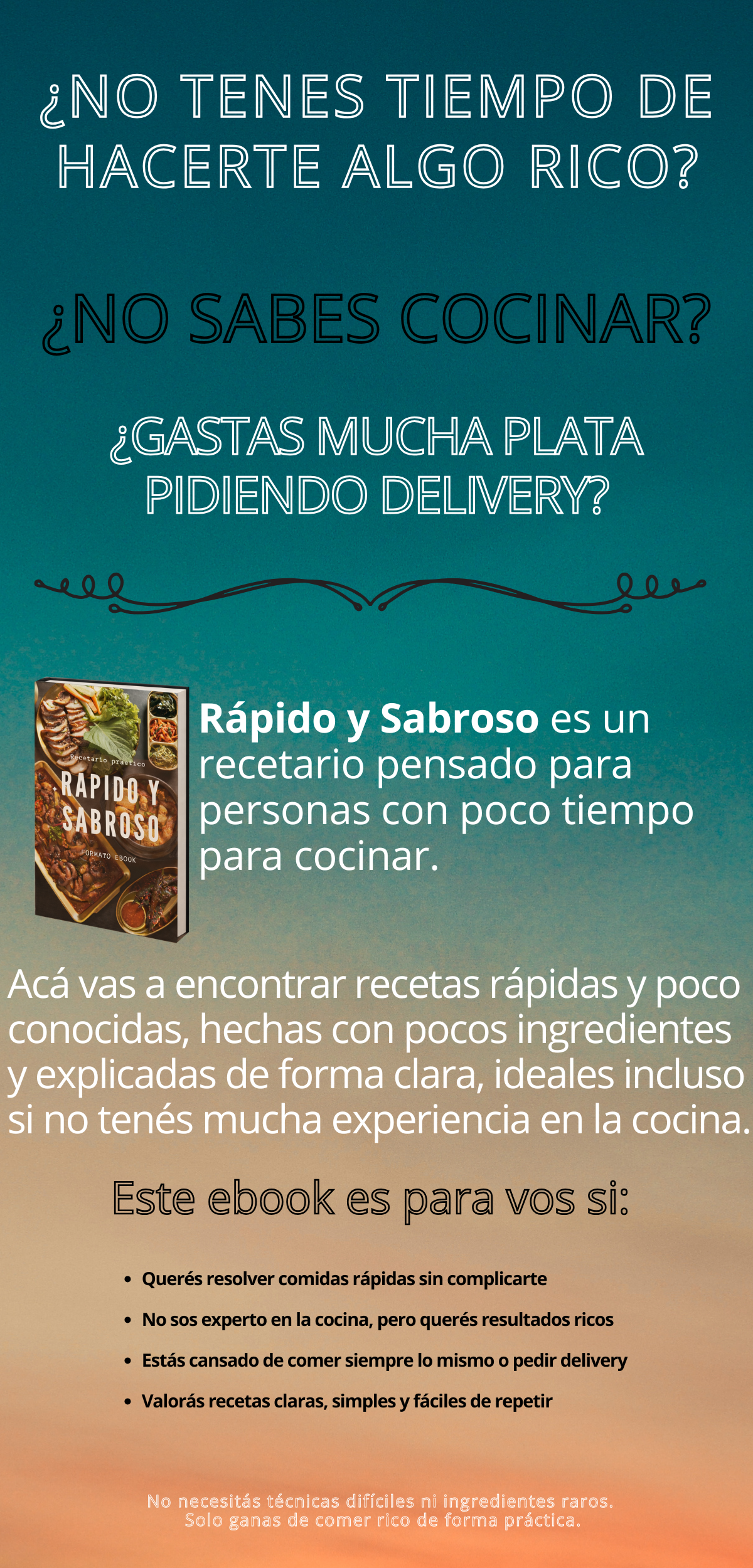 Recibís acceso inmediato al ebook digital Rápido y Sabroso, con recetas prácticas, explicadas paso a paso y pensadas para el día a día.